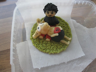 Nämä valmistin pojalleni nimipäivä herkuiksi. Poikani tykkää jääkiekosta, joten se oli myös näiden suklaakeksien teemana. Pohjana itse tehty suklaakeksi, jotka kuorrutin sulatetulla suklaalla. Päälle jääkiekkoilija tomusokeri hunnutus.